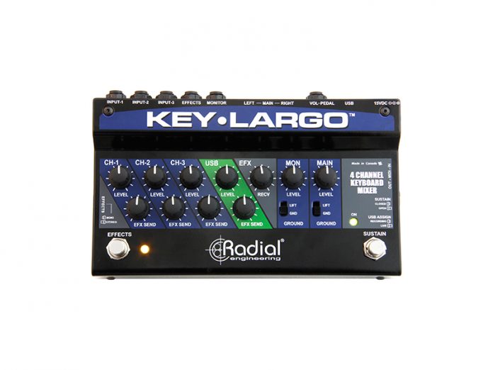 Radial Engineering is now shipping its Key-Largo, a mixer and digital interface designed specifically for keyboard players.