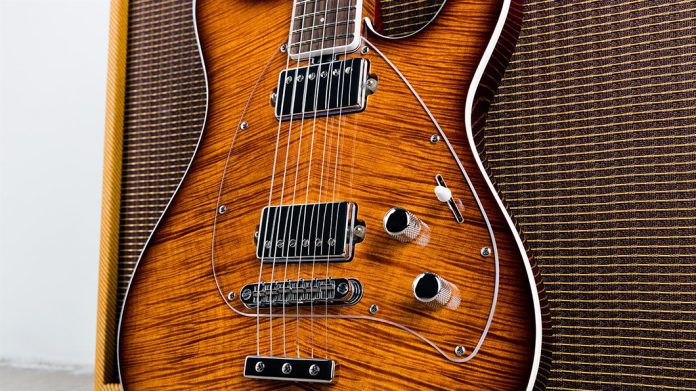 The Steve Morse signature guitar features a stunning figured 5A flame maple top, hand stained with a translucent Caramel Burst finish. The bound reverse headstock figured maple neck with rosewood fingerboard is roasted for added stability and is fitted with 22 stainless steel frets. The dual humbucking African mahogany body features a translucent red back which is also hand fitted with white binding and sealed with a clear polyurethane finish. Each guitar comes with a Steve Morse signed control cavity cover. Limited to 27 pieces worldwide.