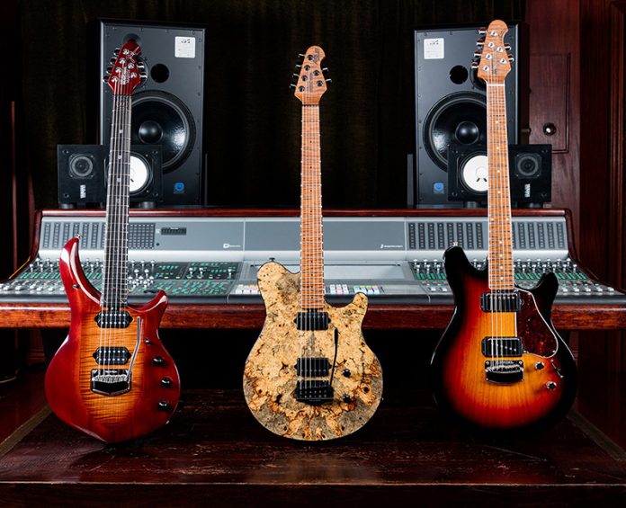 Ernie Ball Music Man has revealed details of its ‘Family Reserve’ models for April, an Axis Super Sport Buckeye Burl Top, a John Petrucci Majesty Sahara Burst and a James Valentine Sunburst Finish.