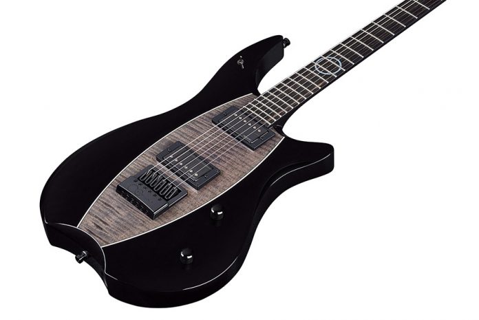 The curved body is made of mahogany with a flamed maple top. Further equipment details include: set-in maple neck, tigerstripe ebony fingerboard, Devin Townsend fingerboard inlays, illuminated fingerboard side dots, easy access electronics compartment, Graph Tech Ratio locking machine heads with wooden knobs, Graph Tech Black Tusq low friction nut, 22 nickel silver frets, IFT Invisible fret system, Plek fretwork, Fishman Fluence Transendence Devin Townsend signature pickups, Evertune Bridge, Cleartone coated strings: .010” – .046”, Warwick security locks, black hardware and Nirvana Black High Polish finish. Included is a Starline RockBag.