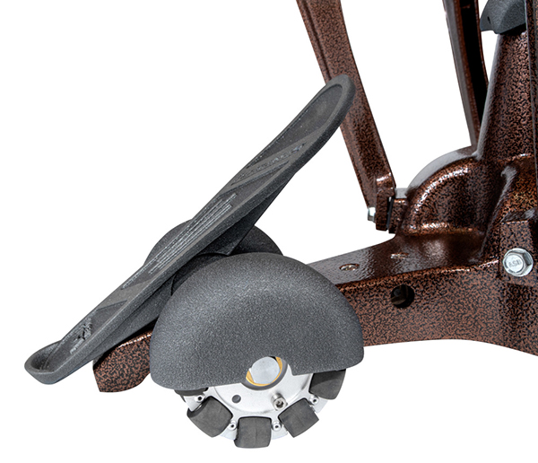 A new tuning gauge placement will allow each Timpani to be configured with American or German set-up, with all tuning gauge linkage being removed from the pedal and seamlessly transferred under the base. A permanent third Omni wheel has been added under the pedal. This wheel allows 360º fluid movement, allowing the player to have total control of drum placement, an industry first for Timpani, says UK distributor Active Music. Further improvements have been made to the rear casters including upgraded braking, larger size wheels with a quick release function. This allows smooth movement and the ability to quickly remove rear casters to enable access through narrow doorways.