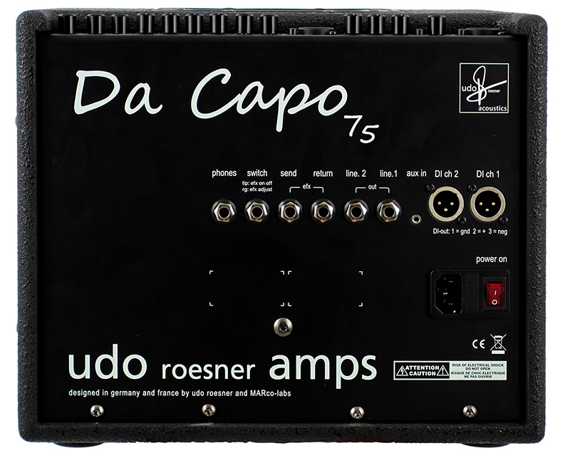 Udo’s goal with the ‘Da Capo 75’ was to design a compact amplifier with more low end and a more transparently mellow mid-range, when compared to other small-form acoustic amplifiers.