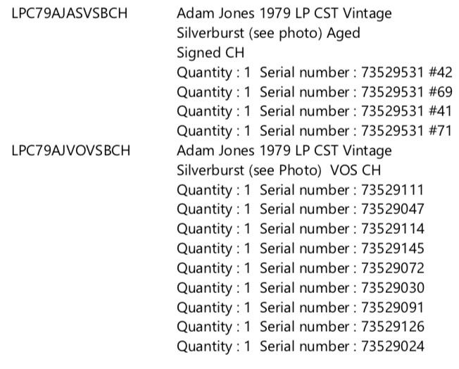 A pallet of new Gibson Adam Jones 1979 Les Paul Custom Silverburst guitars has been stolen from a Sweetwater Music truck at the Flying J Travel Center in Whiteland, IN on October 30, 2020. The truck was en route to Fort Wayne, IN, the headquarters of Sweetwater Sound.