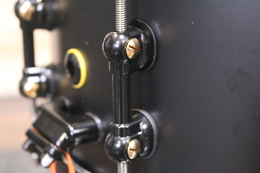 Pearl says…“Pearl Artist Matt Halpern designed each element of his Signature Snare Drum to complement -as well as contrast- the complex nature of his playing. Subtle touches, like black powder-coating and three shell vents help to temper the lively tone of its 1.5mm Brass shell. MasterCast die-cast hoops boost projection but Evans Heavyweight Dry heads deliver a controlled attack. Its SR150 Click-Lock strainer delivers increased sensitivity, while visual touches like black/brass STL Swivel Tube Lugs and striking yellow gaskets, serve to inspire the ideal performance. The end result is a snare drum with cutting, dry, versatility that responds quickly for aggressive play, and serves a variety of styles with an expanded tuning range.”