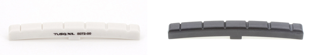 Maintaining the original period-correct 43.18mm / 1.7″ length, 3.3mm / 0.13″ width, 5.41mm / 0.213″ height specifications, each Graph Tech TUSQ XL Slotted 6 String nut has been designed to fit either curved or flat fingerboards, by simply sanding off the tab for a curved fit.