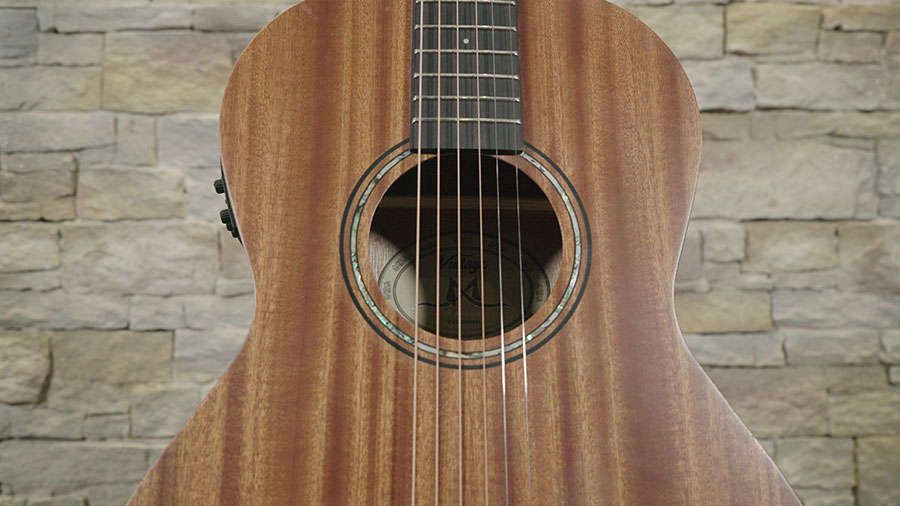 Renowned for its stability, sound velocity and immense tone, mahogany has always been one of the most popular tonewoods for backs, sides, necks and, with an added high-grade mahogany soundboard offset with an intricate abalone rosette, the popular Vintage Mahogany Series electro-acoustic Parlour guitar, delivers a very impressive size defying, balanced output from its compact parlour sized body.