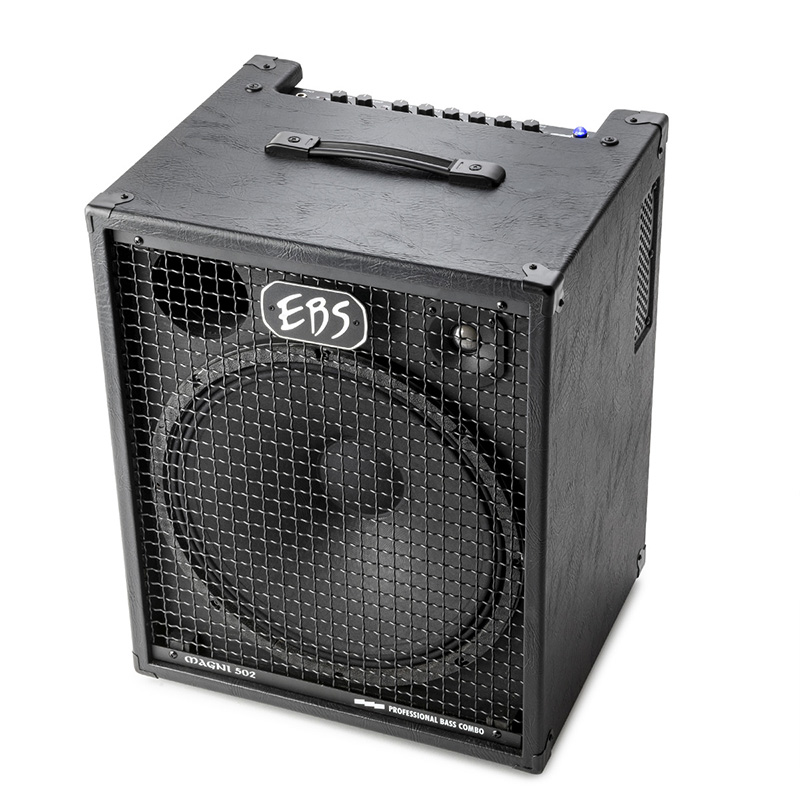 The new 115 model features a 15″ speaker and a tweeter. The amplifier is based on the Reidmar 502 and can handle an extension cabinet down to 4 ohms for a total workload of 2 ohms. The lightweight power stage provides 500W RMS output power and is designed by EBS. The Magni 502 combos are switchable from 120 to 230V.