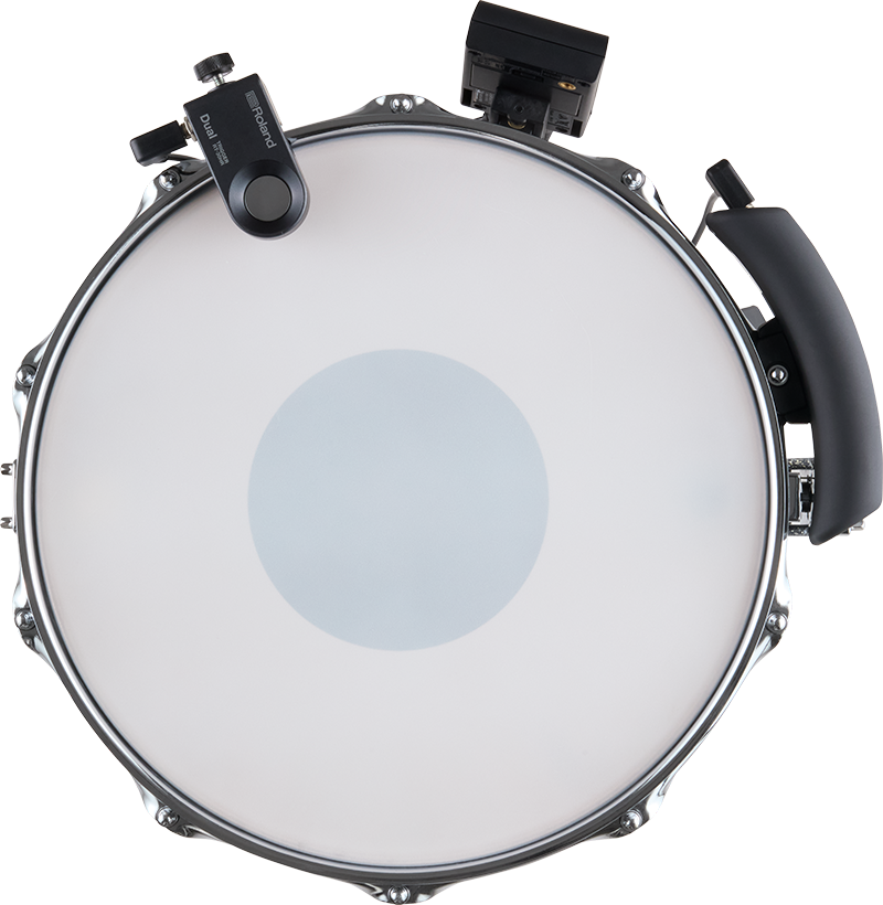 The WT-10 converts the analog trigger outputs on compatible Roland drum/cymbal pads and acoustic drum triggers to wireless signals. Two inputs support single- and dual-trigger pads, allowing users to connect two pads to one unit. A single cymbal with two outputs can be connected for bow/bell/edge triggering, and hi-hat pads with two trigger/control outputs are also supported. The integrated mount is highly adjustable, enabling secure and flexible attachment to drum/pad rims, bass drum hoops, and cymbal/hi-hat stands.