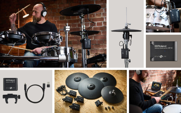 Roland announces the official release of the DrumLink wireless system and related products. Developed in partnership between Roland and Drum Workshop (DW), DrumLink is a new wireless triggering technology for electronic pads, cymbals, and drum triggers. From Roland V-Drums kits to hybrid acoustic-electronic configurations, the modular DrumLink system streamlines connectivity for faster setup and a cleaner look.