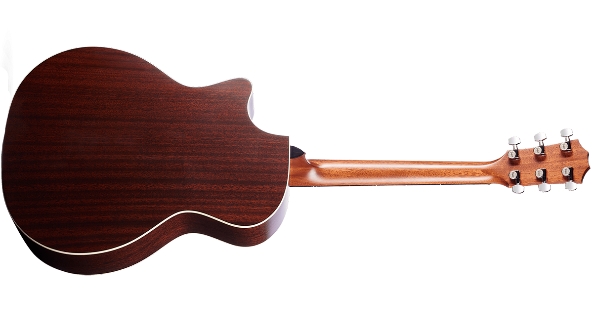 This acoustic-only model features a solid Sitka spruce top and solid sapele back and sides, delivering a clear, warm, balanced voice with appealing midrange presence — an ideal sonic tool for storytelling through song. Additional appointments include grained ivoroid body binding, grained ivoroid fretboard inlays that include the moth and large dot position markers, and a custom double-ring rosette also in grained ivoroid. The Grand Auditorium body features a Venetian cutaway for easy access to upper-register notes. Each guitar comes with a Taylor-built deluxe hardshell case to ensure safe transport, whether across the country or across the quarantine zone.