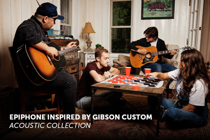 The game-changing Epiphone Inspired by Gibson Custom Collection, developed in close collaboration with the skilled luthiers at Gibson Custom Acoustic in Bozeman, Montana, continues to expand, establishing a new tier of premium Epiphones for every player. Featuring world-renowned Gibson “open book” headstocks, rosewood fretboards, and vintage gloss finishes, the Epiphone Inspired by Gibson Custom Collection brings Gibson Custom designs to the masses, adding to Epiphone’s full array of instruments for all player levels. The Epiphone Inspired by Gibson Custom Collection is available worldwide at authorized Epiphone dealers, the Gibson Garage locations in Nashville and London, and on Epiphone.com.