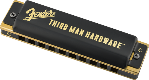 Add retro-inspired style to your sound with the Fender® x Third Man Hardware™ Harmonica. Designed for everyday players, this 10-hole diatonic harmonica features phosphor bronze reeds for bright, bold tone and a moisture-resistant ABS comb for long-lasting reliability. Drawing inspiration from Third Man’s iconic aesthetic, its sleek gold-etched casing, and Third Man Hardware logo deliver vintage flair and timeless appeal. Bring a touch of Jack White’s legendary look to your performance with the Fender x Third Man Harmonica.