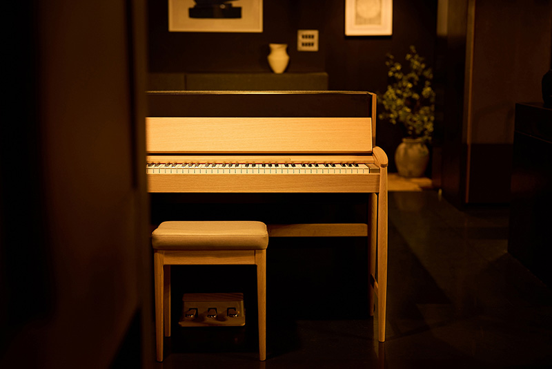Each KIYOLA model includes a piano bench and a three-pedal unit with sustain, soft, and sostenuto pedals, as well as support for advanced half-pedaling techniques. These premium accessories feature wood details that match the instrument’s finish, creating a unified appearance.