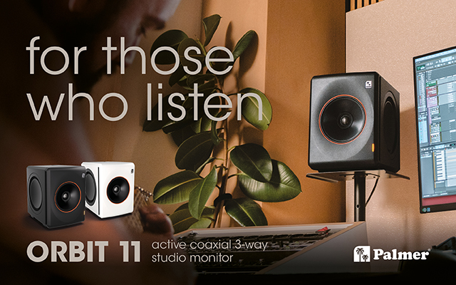 With the ORBIT 11, Palmer introduces a high-quality, active 3-way studio monitor aimed at professional recording studios, project studios and ambitious home recording users. The ORBIT 11 combines an innovative coaxial point source design with high power reserve, linear phase response and extensive customisation options for precise work in modern production environments.